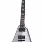 Guitarra eléctrica sólida tipo Flying V.