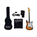 Se trata de un paquete de guitarra eléctrica que contiene un amplificador de 10 watts, cable, tahalí, plumillas y funda. La guitarra Washburn de la serie Sonamaster cuenta con cuerpo de tilo, brazo de maple, diapasón de palo de rosa, 2 2trastes, pastillas Triple Washburn Sonamaster y una palanca trémolo. El amplificador es un modelo G-10 de 10 watts de potencia que cuenta con un ecualizador de 2 bandas, canal clean y overdrive, salida de audífonos y un woofer de 5” pulgadas a 8 ohms.