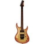 Guitarra Washburn electrica XMPRO2 cuerpo arqueado de caoba, tapa de maple flameado, brazo de caoba, diapasón de ébano, sistema Floyd Rose original, 2 humbuckers Seymour Duncan USM, selector de 3 pasos, 1 vol y 1 tono, 24 trastes, maquinaria Grover Black 18:1, cejuela Black Tusk. Equipadas con cuerdas D’Addario.