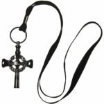 Llave en forma de crucifijo que se cuelga como adorno y se puede desprender de su base para usarla como llavero.