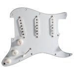 La mica Stratocaster YJM Fury Loaded está listo para colocarse en tu Stratocaster con un patrón americano de 11 agujeros para tornillos. Esta configuración precableada incluye un set calibrado de pastillas exclusivas YJM Fury y el potenciómetro de volumen YJM sin lubricación de alta velocidad que cumple con las demandas de velocidad y capacidad de respuesta de Yngwie. Estas pastillas hechas a mano se fabrican y cargan en las micas en Santa Bárbara, California. El modelo de puente está diseñado para manejar el ataque de cuerdas de Yngwie y ofrece una respuesta precisa y articulada que tiene la cantidad justa de agudos sin sonar áspero o quebradizo. El modelo de puente se embobina más apretado para proporcionar un mejor equilibrio con las pastillas del brazo y del centro. Los modelos de brazo y central están diseñados para resaltar el equilibrio de la técnica fluida de la mano izquierda de Yngwie con su amplia combinación de ataque de púa de la mano derecha para un tono dulce y suave. Tiene la cantidad justa de high-end para hacer que esta pastilla sea extremadamente articulada y especialmente receptiva a la dinámica. En los años 80, patentamos una bobina inferior especial que en realidad inyecta zumbido negativo en el circuito de captación y al final del proceso de producción y ajustamos cada captación para lograr la máxima cancelación de ruido. Obtienes todas las grandes cualidades de una pastilla Stratocaster clásica y nada de zumbido con nuestras pastillas Stack.