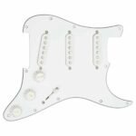 Mica con pastillas para guitarra eléctrica, corte americano Strato de 11 agujeros para tornillos, incluye un set calibrado de pastillas YJM Fury y potenciómetro de volumen, posiciones: puente, central y brazo, imán: alnico 5, cable de 4 conductores, blindado, tipo: pasivo, resistencia brazo: 25.50 kilo-ohms, resistencia centro: 25.50 kilo-ohms, resistencia puente: 25.50 kilo-ohms, esta mica de Stratocaster totalmente cargada fue diseñada por el mismo Yngwie para garantizar que con esta configuración tu Stratocaster ofrezca The Fury.