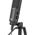 Se incluye un filtro pop premium, que se ajusta a la base del micrófono, colocando el filtro a la distancia ideal de la cápsula para minimizar las oclusivas (sonidos duros ‘B’, ‘T’ o ‘P’ que producen un sonido áspero) durante canto o discurso. También se proporciona un soporte de pie de alta calidad con rosca estándar de la industria de 3/8”, un trípode de escritorio que permite que el NT-USB se asiente a una altura cómoda sobre una mesa y una bolsa para guardar el micrófono cuando no se usa.