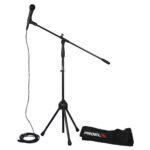 Incluye los accesorios necesarios para el escenario y estudios de grabación, un atril negro para micrófono modelo RSM200BK, un micrófono dinámico modelo DM226, un cable de 6 metros modelo CHL250LU6 con cuerpo blanco y pines en oro, con conectores XLR Neutrik y un soporte de goma para micrófono modelo APM20. Todo esto en una práctica funda de nylon.