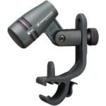 Micrófono compacto dinámico, ideal para toms y tarola, transmite extremos niveles de presión sonora (más de 160 dB) sin distorsión, carcasa reforzada de fibra de vidrio resistente a los impactos, muy bajo ruido estructural, manejo extremadamente sencillo y posicionamiento libre, bobina de compensación, dimensiones: Ø 33 x 59 mm, conector XLR-3, respuesta de frecuencia: 40 – 18,000 Hz, principio del transductor: dinámico, peso: 60 g, patrón polar cardioide, sensibilidad en campo abierto, sin carga, (1kHz): 1,8 mV/Pa, impedancia nominal: 350 ohms, impedancia mínima de terminación: 1000 ohms, incluye clip para tambor y una bolsa de transporte.