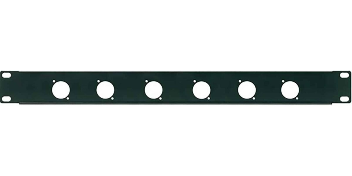 Panel de rack de 19” pulgadas con 6 agujeros de montaje para conectores XLR/Speakon (24 mm).