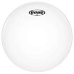 El parche Evans G12 es un parche más fuerte y duradero. Está fabricado con una sola capa de película. Hecho a mano utilizando una película de primera calidad de 12 milésimas de pulgada de grosor en vez del estándar de la industria de 10 milésimas de pulgada, el G12 ofrece una durabilidad sin precedentes, sin perder la fuerte respuesta dinámica de un parche de una sola capa. Ideal para su uso en situaciones de desempeño de alto volumen, el G12 puede soportar ser tocado fuerte, mientras se proyecta a través de la mezcla para ofrecer un sonido completo y agresivo. Capa de color blanco Evans, que proporciona un tono cálido, mientras que la versión transparente proporciona una respuesta de frecuencia completa para la proyección máxima.