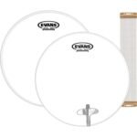 Paquete MakeOver de Evans para tarola que incluye un parche de golpe Power Center Reverse Dot de 14″ pulgadas (B14G1RD), un parche resonante Hazy 300 de 14″ pulgadas (S14H30), un entorchado CUSTOM PRO STL de PureSound de 14″ pulgadas y una llave modelo DADK para afinar.