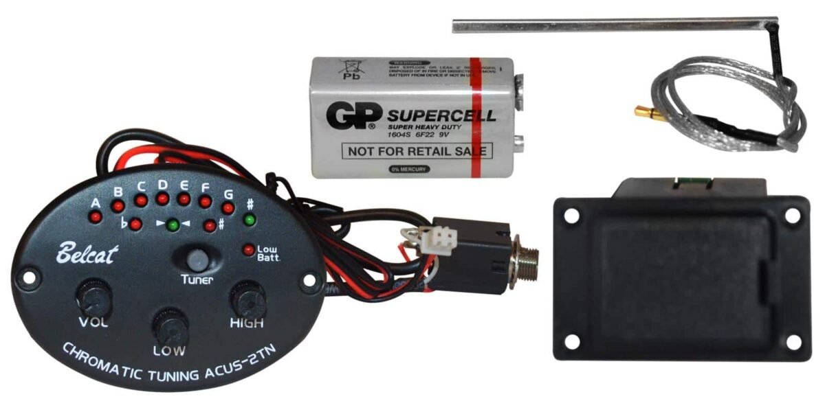 El preamp ACUS-2TN de Belcat para guitarra acústica de cuerpo delgado te ofrece una gran amplificación con un excelente sonido, tiene un ecualizador de dos bandas con un afinador LED y es ideal para cualquier género musical. Utiliza una pila alcalina de 9V y una pastilla piezo cerámica B-6900 de Belcat.