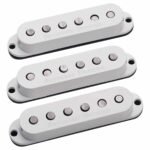 David Gilmour necesitaba un sonido bombeado para su famosa Black Strat, por lo que Seymour bobinó lo que se convertiría en la pastilla Stratocaster Custom Staggered de salida media. Ha sido y sigue siendo un honor trabajar con semejante leyenda. La Custom Staggered es una single-coil overwound especial que logra un gran equilibrio entre el aumento de salida y el carácter tonal clásico de Stratocaster. Ofrecerá acordes más grandes y gruesos y atravesará la mezcla con más claridad que una pastilla de Stratocaster tradicional, manteniendo al mismo tiempo la magia y el encanto que hacen que una Stratocaster suene como una Stratocaster. Las notas individuales son audaces y fuertes y los solos realmente cantan. Úsala en la posición del puente con un par de pastillas Vintage Staggered Strat en el brazo y en el centro para una configuración aprobada por Gilmour. Utiliza un RWRP Staggered en el centro para una configuración silenciosa en las posiciones 2 y 4. La pastilla Custom Staggered Strat también está disponible en una versión versión de 7 cuerdas. Las bobinas están fabricadas con imanes de varilla de alnico 5 rectificados a mano, laqueados y bobinados, y están encapsulados en cera para ofrecer un rendimiento sin chirridos. Utilizamos un diseño plano ovalado moderno de Forbon (no triangular) que permite que esta pastilla se adapte a cualquier guitarra diseñada para single-coils. Los modelos de posición de brazo, centro y puente, tendrán la misma salida, dirección de bobinado y polaridad magnética. Posición RWRP central (bobinado inverso / polaridad inversa): Elije esta opción para tener una pastilla que cancele el zumbido con uno de nuestros modelos de brazo o puente. Todos los sets, excepto el modelo exclusivo de Jimi Hendrix, vienen con un RWRP central como pastilla intermedia. Izquierda para algunos modelos con piezas polares staggered vintage, ofrecemos una opción para zurdos. El stagger se invertirá para los guitarristas zurdos. Tapped: Los modelos de alta salida pueden tener una opción de “tap” disponible. Se coloca un cable conductor adicional a la mitad del bobinado, lo que permite el cableado a un potenciómetro push-pull o un miniswitch de palanca para brindas una opción de nivel de salida vintage adicional.