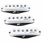 El 28 de marzo de 1968, Jimi Hendrix le pidió al joven Seymour W. Duncan que lo presentara con su guitarra en el escenario en un show Experience de la Universidad Xavier en Cincinnati, OH. Esa Stratocaster estaba cargada con pastillas Seymour de cuerda manual en su grabadora sólo para Jimi. Esa inolvidable noche pondría en marcha el futuro de Seymour y su legado casi cinco décadas después. Ahora puedes estar un poco más cerca del mundo de Jimi con nuestras pastillas Jimi Hendrix Signature Classic Strat. Al igual que la música de Jimi, las pastillas Jimi Hendrix Signature Strat tienen sus raíces en lo tradicional, pero con la vista puesta en el futuro. Cada pastilla tiene un bobinado personalizado para un tono más rico y melódico. El modelo de puente tiene un ataque agresivo que se abre camino mientras se mantiene fiel al icónico tono solista de Jimi. La pastilla de brazo/centro suena gruesa y completa y es ideal para el trabajo de acordes, melodías de blues, double-stops y el estilo híbrido de acorde/melodía característico de Jimi. Y en las posiciones intermedias hay mucho de ese clásico ‘quack’ de la Strat. En lo que se refiere a las especificaciones, Seymour es meticuloso con la corrección vintage y el set Stratocaster original que le dio cuerda a Jimi en 1968 no tenía una pastilla central RWRP. Por lo tanto, al igual que las originales, la pastilla intermedia de estas precisas recreaciones tampoco es RWRP. Para ayudarte a acercarte aún más al tono trascendental de Jimi, cada pastilla está hecha con un escalonamiento magnético inverso para capturar el efecto de tocar una guitarra para diestros al revés y cambiar las cuerdas para zurdos. Las cubiertas blancas de las pastillas exhiben la firma de Kimi y el set también viene con un folleto y stickers conmemorativos. Las pastillas Jimi Hendrix Signature están totalmente autorizadas por Authentic Hendrix LLC.