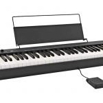 Piano digital de 88 teclas con respuesta al tacto, polifonía máxima: 64 notas, 10 tonos, 4 tipos de reverb y 4 tipos de chorus, metrónomo: Beat bell: 0 (off), 1 a 9 (beats), rango de tempo: 20 a 255, 2 canciones demo, pedal, transposición: -12 a 0 a 12 semitonos, afinación: A4 = 415,5 Hz a 465,9 Hz (inicial default: 440,0 Hz), variable en pasos de 0,1 Hz, MIDI: Receptor multi timbre de 6 canales, salida de audífonos, puerto USB, 2 altavoces de 12 x 6 cm (oval), potencia: 8W+8W, utiliza adaptador AD: AD: AD-A12150LW o 6 pilas alcalinas AA, consumo de energía: 12 V – 8 W, dimensiones: 132.2 x 23.2 x 9.9 cm, peso: 10.5 kg.