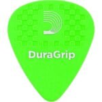 Paquete con 25 púas, serie DuraGrip, color verde fosforescente, calibre mediano(0.85 mm), diseño de agarre único para un mayor control, tono brillante, ideal para tocar estilos derivados de jazz, fabricada en USA.