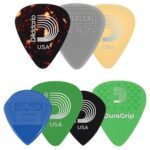 Skip to contentPaquete de 7 púas de diferentes modelos, elíge la que más te acomode, contiene una púa de calibre mediano de cada modelo: Celluloid, Nylflex, Nylpro, Cortex, Delrin, Black Ice y Duragrip.