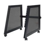 Rack Proel. Modelo: KRPRO10BS. 4 ruedas profesionales y paneles perforados laterales. Para 10 unidades de rack. Medidas: 550 mm de ancho, 540 – 750 mm de profundidad y tubería de 40 x 20 mm.