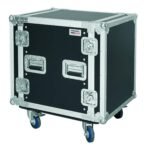 Estuche de rack profesional de 19″ pulgadas para 12 unidades con 4 ruedas de 100 mm de grado industrial (2 con freno).
