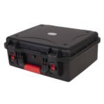 Estuche de polipropileno moldeado por inyección Dimensiones externas: Anchura 465 mm x Profundidad 400 mm x Altura 190 mm / Dimensiones internas: Anchura 430 mm x Profundidad 340 mm x Altura 175 (130 + 45) mm. Color negro.