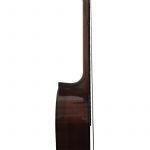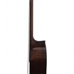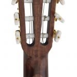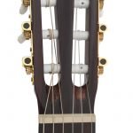 Requinto con tapa sólida de cedro, lados y fondo de caoba, brazo de caoba, diapasón de palo de rosa, puente con diseño de mariposa, maquinaria dorada, distintivas incrustaciones de cuerno largo de toro en la cabeza, revestimiento de tres pliegos en el cuerpo, incluye funda acolchada de lujo.