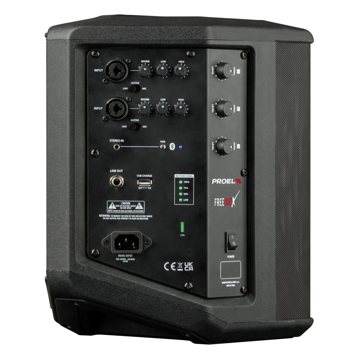 FREEONEX es un sistema de sonido personal todo en uno alimentado por batería que cuenta con múltiples entradas y conectividad BLUETOOTH. Alojado en un gabinete de polipropileno compacto, ligero pero ultrarresistente con múltiples posiciones de apuntado, representa la solución perfecta para músicos, DJ y usuarios generales de PA.