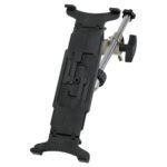 Soporte universal para tablet y smartphone, se coloca en un soporte de micrófono (hasta 25 mm de grosor), infinidad de ajustes, soporte de plástico cubierto de goma, abrazadera de aluminio diecast, color negro con piezas en plata, ideal para dispositivos con tamaños desde 4.7″ hasta 12.9″ pulgadas con un ancho de 90 hasta 233 mm.