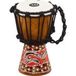 El mini djembe estilo africano de Meinl esta tallado en una sola pieza sólida de caoba. Cuentan con un exterior decorado exquisito pintado y tallado a mano. Su tamaño lo hace ideal para disfrutar de tocar en casa o unirse a un círculo de tambores. Estos djembes de alta calidad están equipados con parches de cuero de cabra seleccionados a mano y cuerdas de ajuste de nylon para proporcionar un sonido excepcional.