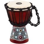 El mini djembe estilo africano de Meinl esta tallado en una sola pieza sólida de caoba. Cuentan con un exterior decorado exquisito pintado y tallado a mano. Su tamaño lo hace ideal para disfrutar de tocar en casa o unirse a un círculo de tambores. Estos djembes de alta calidad están equipados con parches de cuero de cabra seleccionados a mano y cuerdas de ajuste de nylon para proporcionar un sonido excepcional.