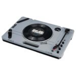 Tornamesa portátil para amantes del vinilo y artistas del scratch, diversión móvil a donde quiera que vayas, perfecto para scratching y cutting, muestras grabadas profesionalmente para scratch y beats para juggling, transmisión de audio por bluetooth de música o ritmos al dispositivo, grabación USB inteligente, grabación directa de scratches y cutting USB en formato MP3, también se puede usar para digitalizar vinilos, altavoz integrado a la izquierda del tornamesa, 3 velocidades seleccionables (33 1/3, 45 y 78 RPM), brazo de tono extremadamente estable con bloqueo de transporte, cartucho con excelentes funciones de seguimiento, crossfader preciso de 45 mm con tecnología de deslizamiento de dos rieles, el crossfader se puede instalar en el lado preferido (en ambos sentidos), dos conexiones de audífonos para escuchar y monitorear, entrada AUX que facilita la conexión de varios tocadiscos (daisy chain), carga fácil de la batería por medio de una fuente de alimentación USB o un power bank USB (se venden por separado), botón start/stop, ajuste de velocidad preciso mediante control de tono con ±20%, control de tono para ajustar las bajas frecuencias en ±10 dB, control de volumen para entrada AUX y master/audífonos, el LED de encendido indica el estado operativo del tornamesa, adaptador de disco de grabación de 7″ pulgadas con soporte, patas de goma antideslizantes para un soporte seguro, factor de forma especialmente resistente y portátil con funcionamiento con batería opcional, protección adicional gracias a la cubierta anti polvo, se puede transportar por medio del asa de transporte cuando está cerrado, bloque de la cubierta anti polvo para un transporte seguro, se puede operar con una fuente de alimentación USB normal (5 V, 2 A), power bank USB o baterías (se venden por separado), las baterías se pueden insertar en el compartimento de baterías en la parte inferior del dispositivo 2x Li-Ion 18650 (se venden por separado), incluye scratch vinyl de 7″, cartucho preinstalado, alfombrilla, cubierta anti polvo, adaptador de disco, cable USB, manual de instrucciones y app Super Spin Duck Looper.