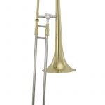 Skip to contentTrombón estándar, tonalidad en Bb, latón laqueado, bomba interna de cuproniquel, campana de 203 mm, orificios de 12.7 mm, incluye boquilla y estuche ligero de lona.