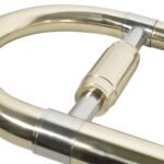 Trombón tenor, laqueado dorado, orificios de 14.8 mm, diámetro en campana 216 mm, incluye estuche ligero.