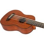 Ukelele bajo electro acústico de 4 cuerdas, 16 trastes, tapa, aros y fondo de caoba, puente y diapasón de nogal, brazo de okume africano, preamplificador Flight FU-T3, cejuela y montura de hueso, marcadores de posición en los trastes 5, 7, 10, 12 y 15, clavijas de engranaje, roseta grabada con láser, incluye funda acolchada y un librito educativo gratis.