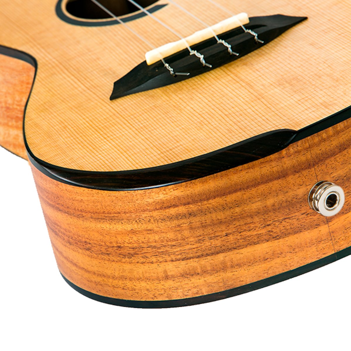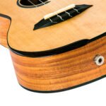 Hasta mediados del 2020, los modelos presentaban una pastilla Artec pasiva, después comenzamos a utilizar pastillas activas C1U dobles en este ukelele. Los controles para la pastilla activa están montados debajo del orificio de sonido, lo que significa que no es necesario crear una cavidad en el lateral del ukelele para la pastilla. Lo más importante es que suena genial. Los ukeleles con nuevas pastillas activas incluyen una A (activo) en el número de modelo.