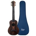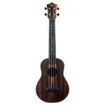 Ukelele concierto, 17 trastes (14 al cuerpo), tapa de amara laminada, aros y fondo de ABS, puente de ABS, botón de tahalí, brazo y diapasón de ABS, cejuela y montura de ABS, cejuela de 36.6 mm de ancho, marcadores de posición en los trastes 5, 7, 10 y 12, roseta dibujada a mano grabada con láser, traste cero, espalda arqueada, afinadores de engranaje abiertos, puntos laterales.